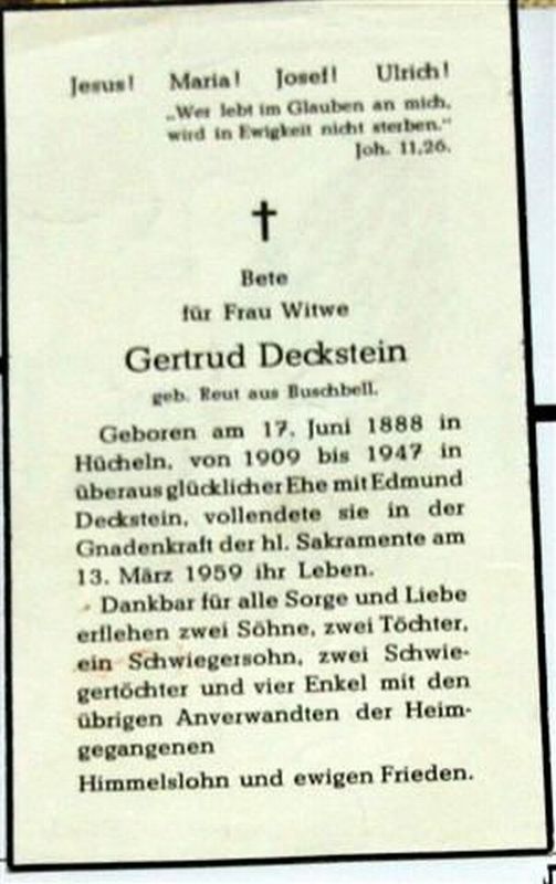 Deckstein, geb. Reut | Vorname: |