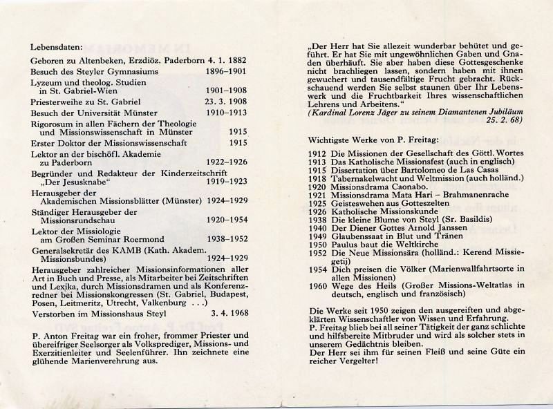 Freitag, Prof Dr., SVD, Anton