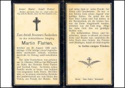 | Tod durch Un glücksfall; Eltern: Peter Flatten u. Gertrud geb. Esser; übte im väterl. Betrieb die Landwirtschaft aus; Tod mitten in der Berufsarbeit beim Einholen der letzten Garben der Ernte |