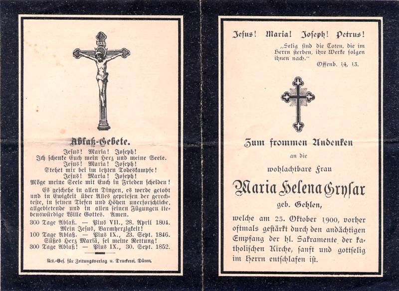 Grysar, geb. Gehlen | | Vorname: |