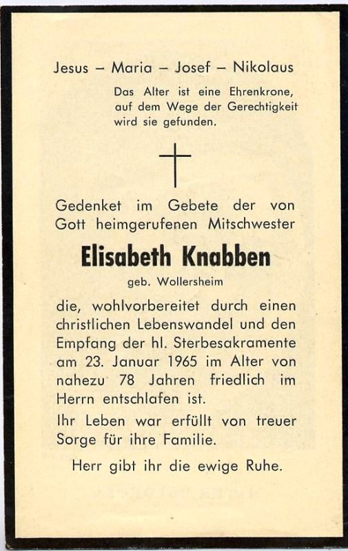 | 78 J.; Wohnort: Brauweiler; ∞ 31.7.1909 Heinrich Knabben; 6 K. |