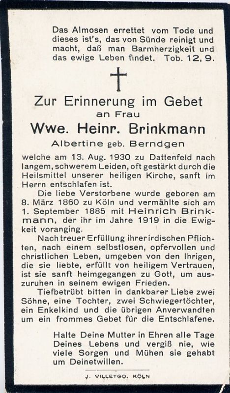| ∞ 1.9.1885 Heinrich Brinkmann, † 1919; 3 überlebende Kinder |