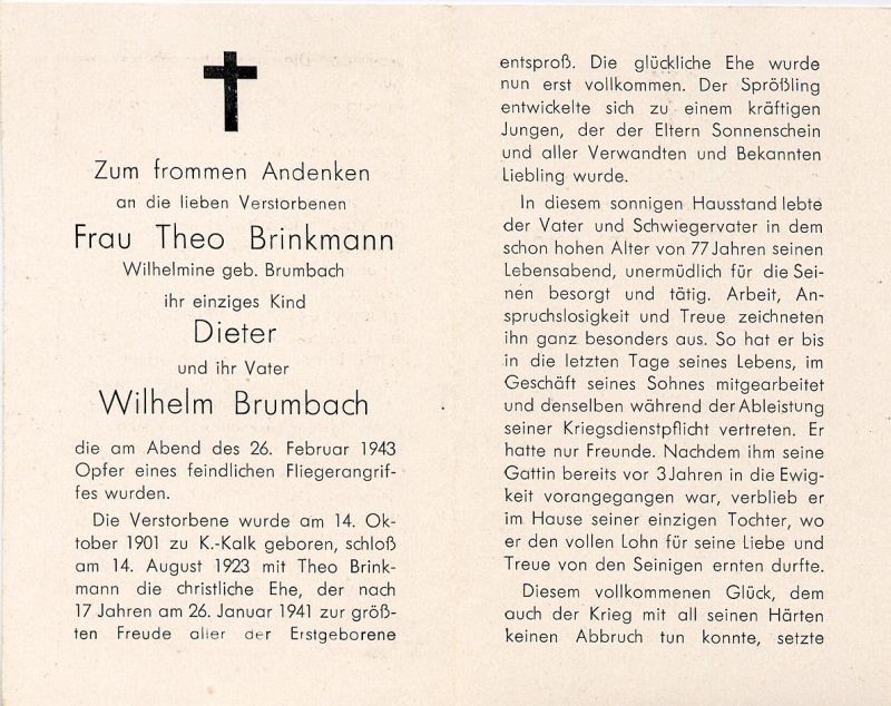 Opfer 2. Weltkrieg: Tod bei Fliegerangriff; ∞ 14.8.1923 Theo Brinkmann; 1 Sohn |