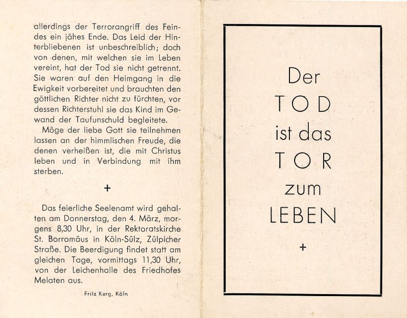 Opfer 2. Weltkrieg: Tod bei Fliegerangriff; Eltern: Theo Brinkmann u. Wilhelmine geb. Brumbach |