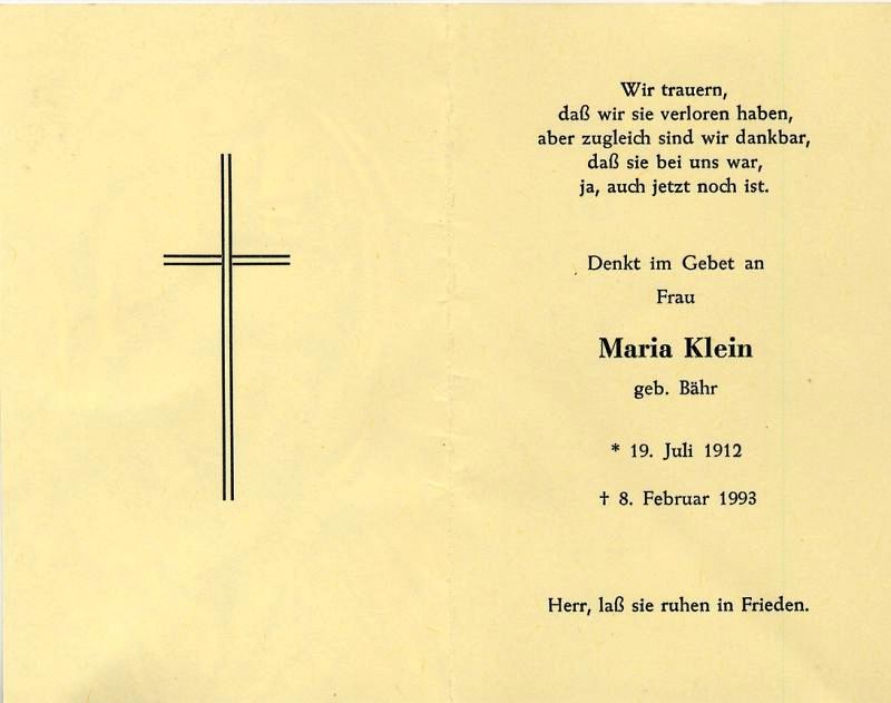 Klein, geb. Bähr