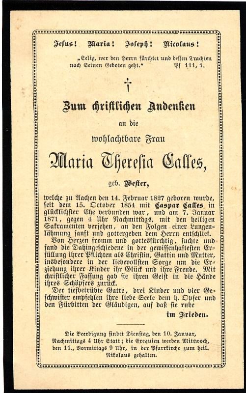 | Lungenlähmung; ∞ 15.10.1854 Saspar Calles; 3 überlebende Kinder |