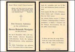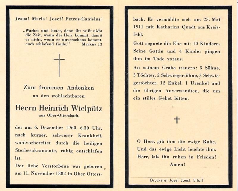 ∞ 23.5.1911 Katharina Quadt aus Kreisfeld, † ; 10 K., davon 4 †; Druck in Eitorf |