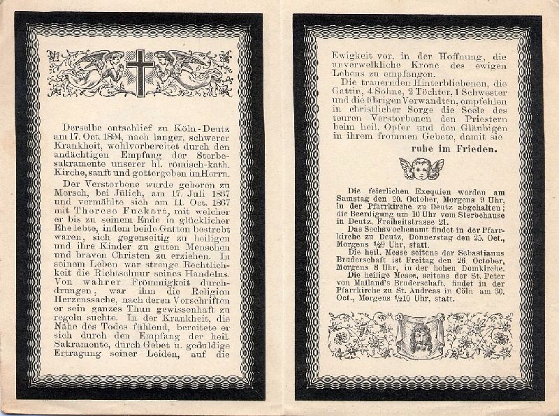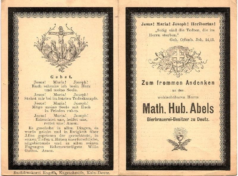 Bierbrauerei-Besitzer in Köln-Deutz; ∞ 11.10.1867 Therese Fuckart; 6 überlebende Kinder |