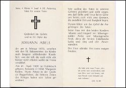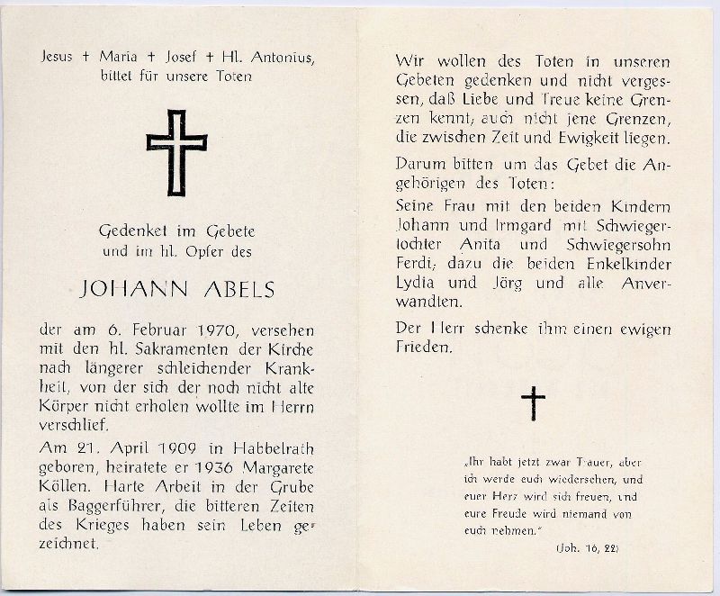 ∞ 1936 Margarete Köllen; Baggerführer in Braunkohlengrube; 2 überlebende Kinder (Johann, Irmgard) |