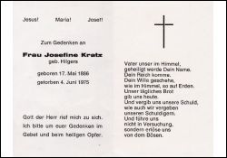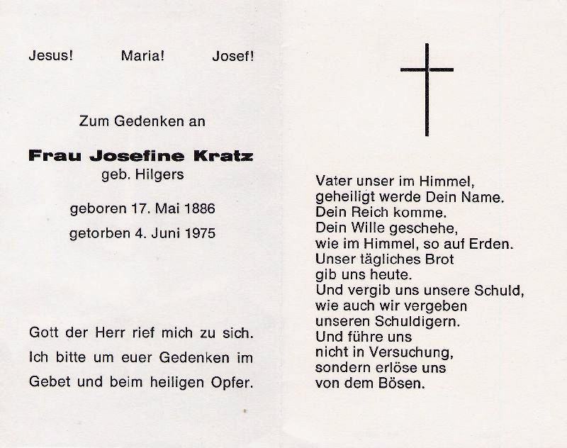 ∞ Josef Kratz, *9.1.1890 Kerpen-Horrem, † 11.1.1968 Frauwüllesheim; kinderlos; Ehepaar lebte auf dem Weißfrauenhof in Frauwüllesheim |