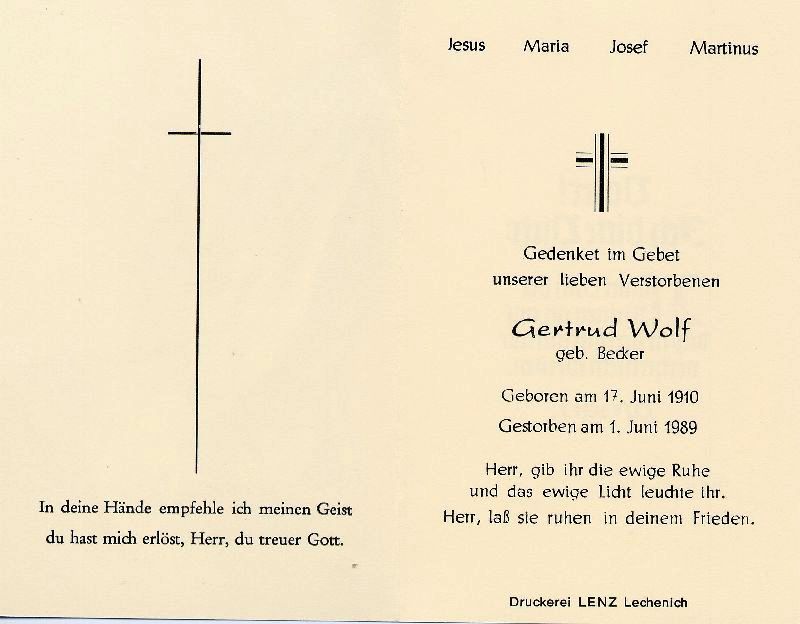 Wolf, geb. Becker | Vorname: |
