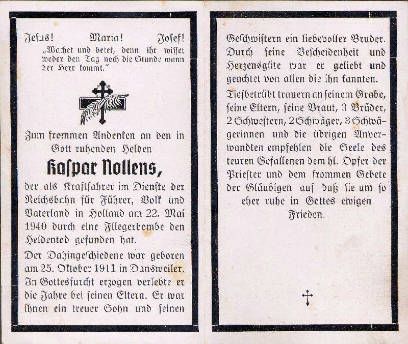 Gefallener 2. Weltkrieg; Tod durch Fliegerbombe; verlobt; |