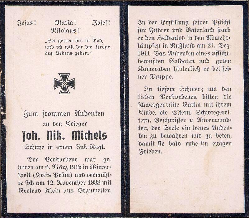 Gefallener 2. Weltkrieg; ∞ 12.11.1938 Gertrud Klein aus Brauweiler; 1 K. |