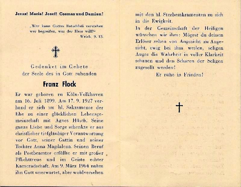 Wohnort: Pulheim; ∞ 17.9.1927 Agnes Hüsch; Tochter Anna Magdalena; Postbeamter; |