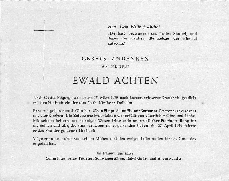 27.4.1916 ∞ Katharina Zeitzen; 4 K.; 1956 Goldhochzeit |