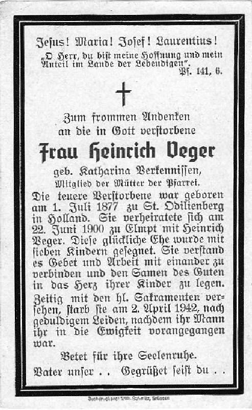 ∞ 22.6.1900 zu Elmpt Heinrich Veger, † ; 7 K. |