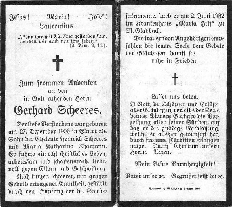 Eltern: Heinrich Schreeres u. Maria Katharina Chartrain |