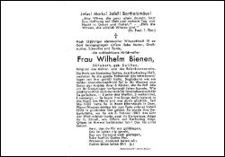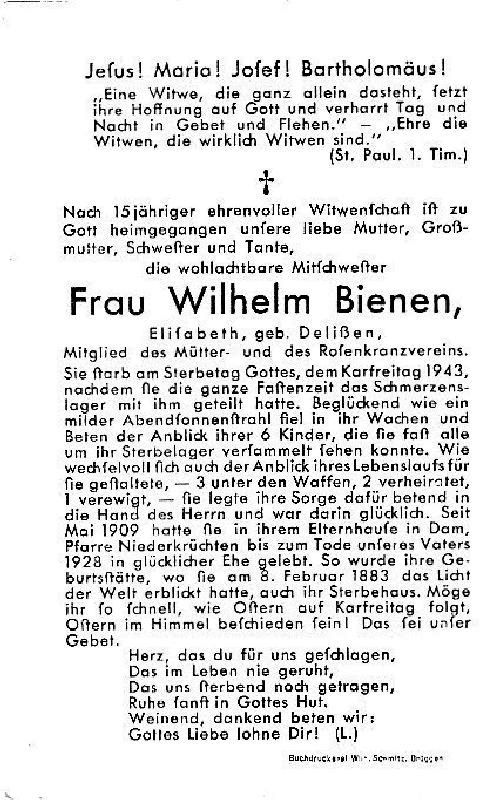 Mitgl. Mütterverein u. Rosenkranzverein; ∞ Wilhelm Bienen, † 1928; 6 K., davon 1 †; |