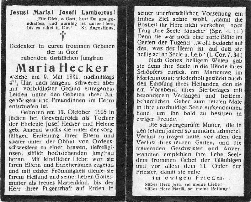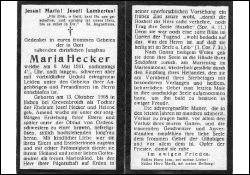Jungfrau; Eltern: Josef Hecker, †, u. Helene geb. Amend; |