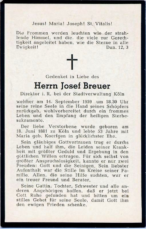 Direktor i. R. bei der Stadtverwaltung Köln; 53 J. verheiratet mit Maria geb. Koerfgen; 1 Tochter |