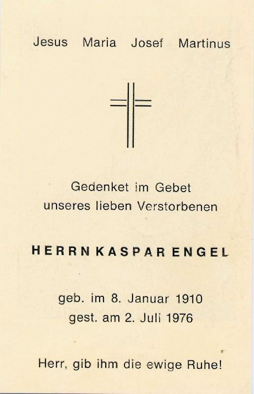 ∞ Margarete Hemmersbach, *1904, †1985; Schlosser; lebte seit Eheschließung in Erftstadt-Kierdorf; 1 Sohn Fritz |