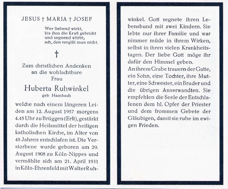 ∞ 21.4.1931 in Köln-Ehrenfeld Walter Ruhwinkel; 2 K. |
