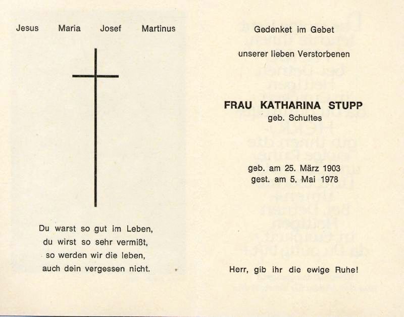 ∞ Michael Stupp; lebte in Kierdorf-Roggendorf (jetzt Erftstadt) |