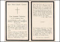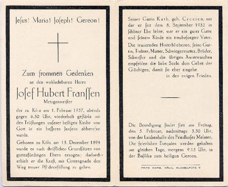 Metzgermeister; ∞ 8.9.1932 Katharina Creeten; 1 Tochter |