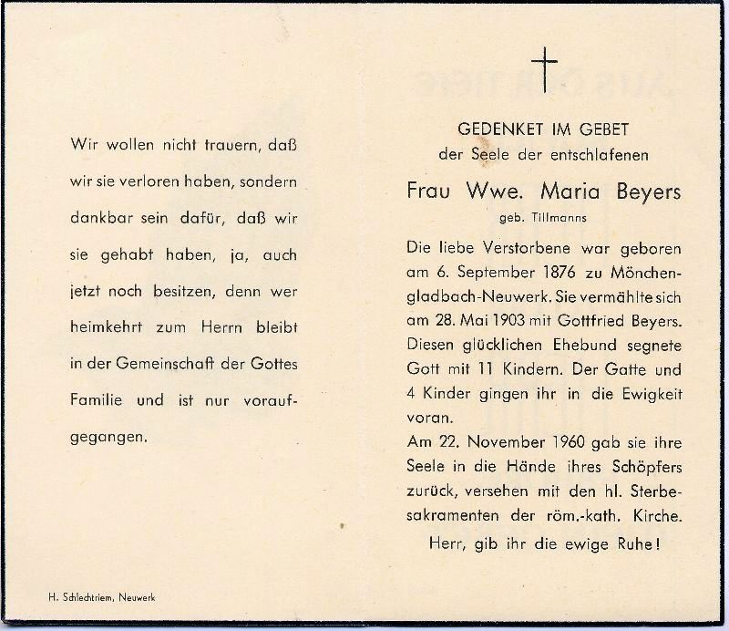 Beyers, geb. Tillmanns | Vorname: |