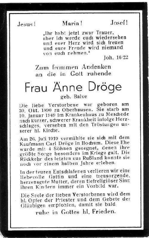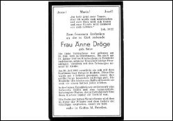 | Herzschlag; ∞ 26.7.1919 Kaufmann Carl Dröge aus Bochum; 4 Söhne |