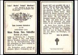 | ∞ 8.1.1859 Hermann Josef Schieffer, † 1882; 11 K., davon 5 †; Druck in Grevenbroich |