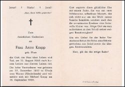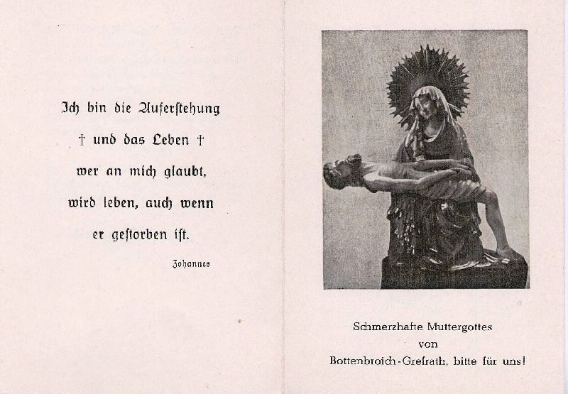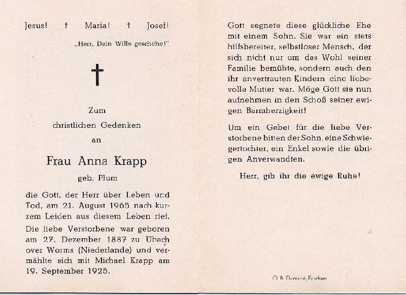 ∞ 19.9.1925 Michael Krapp; 1 Sohn; sorgte auch für andere Kinder; Druck in Frechen |