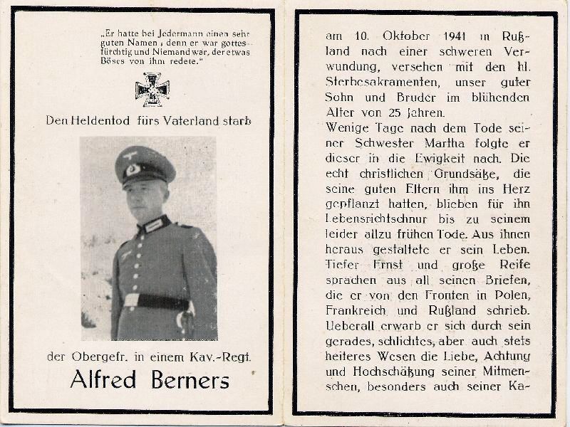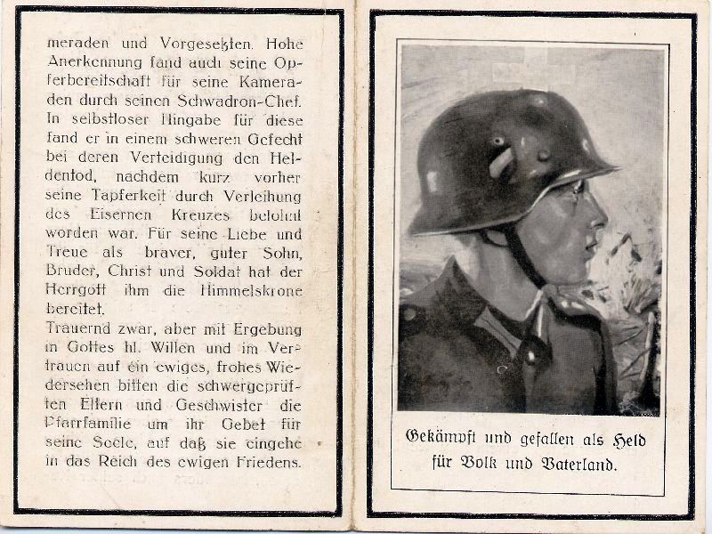 | Gefallener 2. Weltkrieg; 25 J.; Schwester Martha † wenige Tage vorher; |