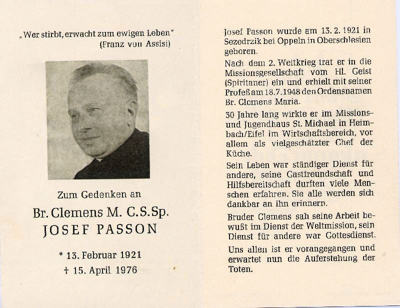 Clemens M., Ordensbruder, geb. Passon | Vorname: |