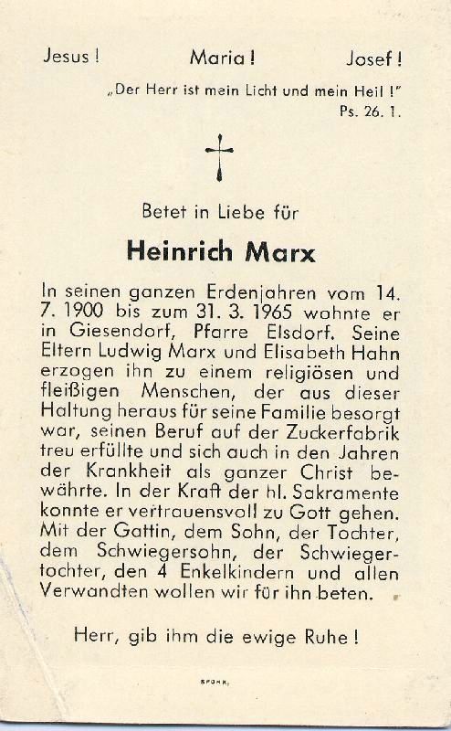 | Eltern: Ludwig Marx u. Elisabeth geb. Hahn; auf der Zuckerfabrik in Elsdorf tätig; 2 K. |