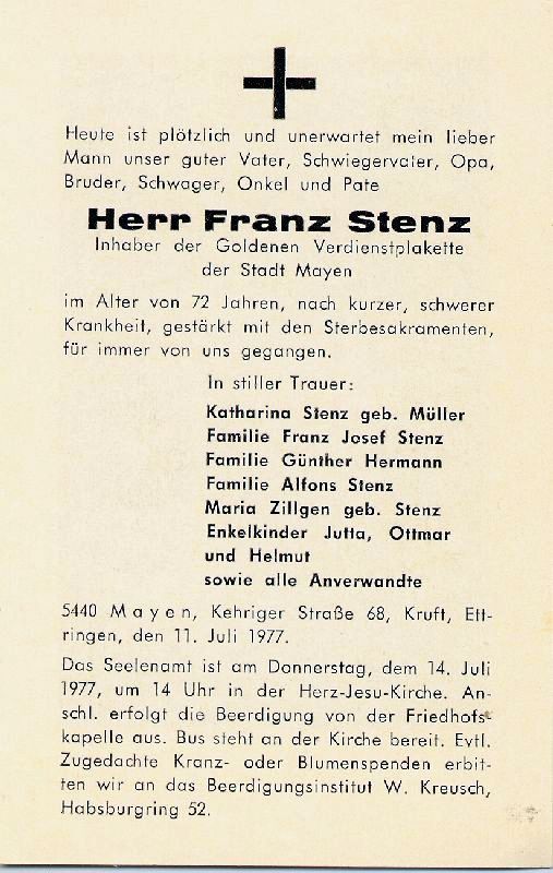 72 J.; Goldene Verdienstplakette der Stadt Mayen; ∞ Katharina Müller; Kinder |