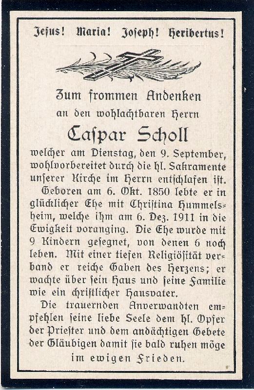 ∞ Christina Hummelsheim, † 9.12.1911; 9 K., davon 3 †;