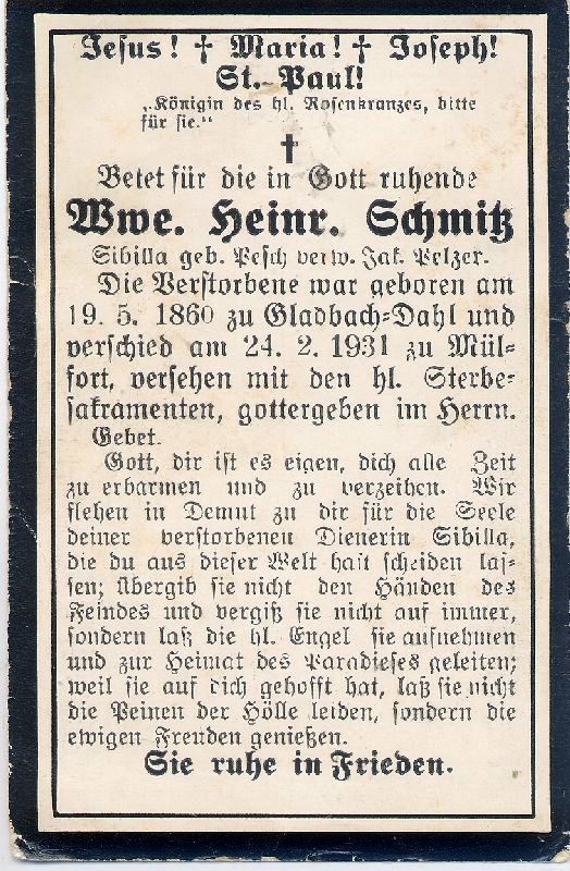 Schmitz, geb. Pesch, verw. Pelzer | Vorname: |