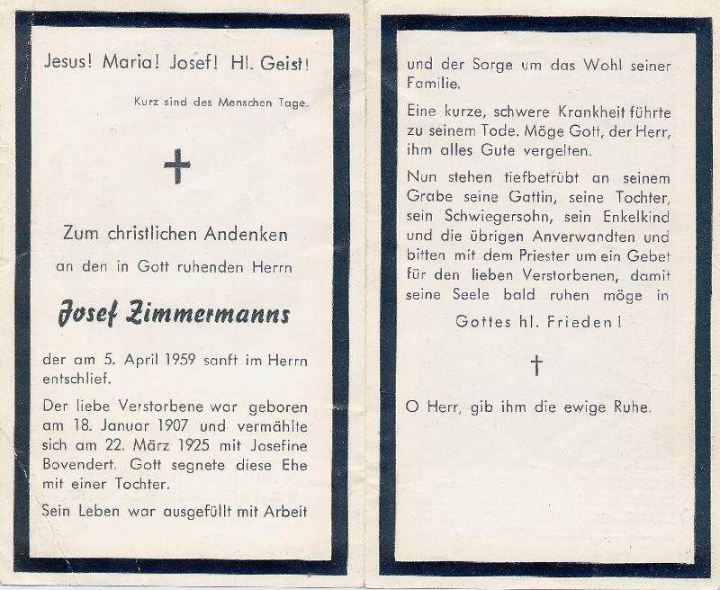 ∞ 22.3.1925 Josefine Bovendert; 1 Tochter