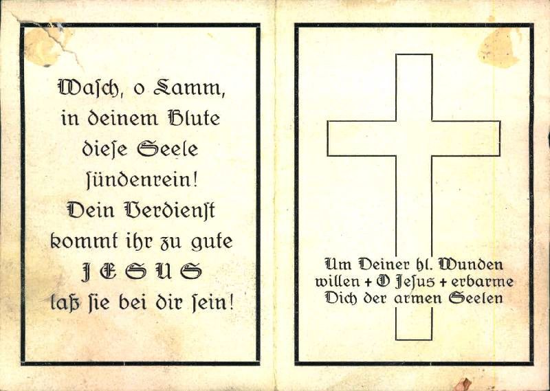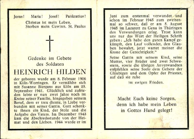 Opfer 2. Weltkrieg; ∞ 25.9.1941 Susanne Biergans, 1 Kind; Mutter, 4 Brüder, 2 Schwestern |