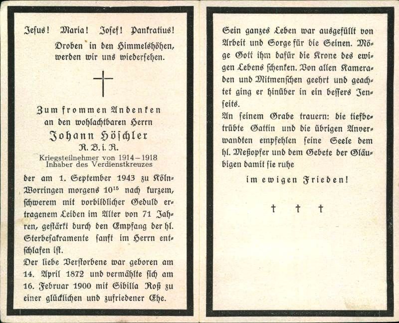 | ∞ 16.2.1900 Sibilla Roß; Kriegsteilnehmer 1914-1918, Inh. Des Verdienstkreuzes; R.B. i. R. |