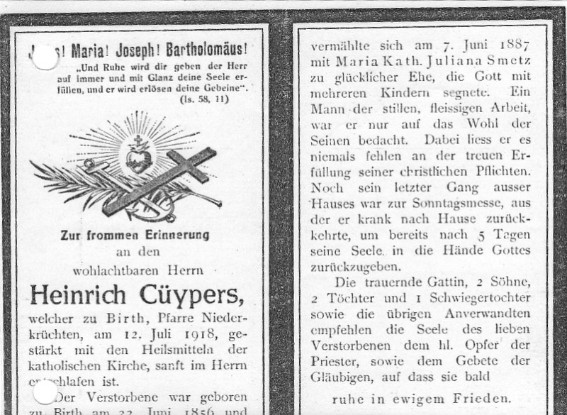 ∞ 7.6.1887 Maria Katharina Juliana Smetz; 4 überlebende Kinder; |