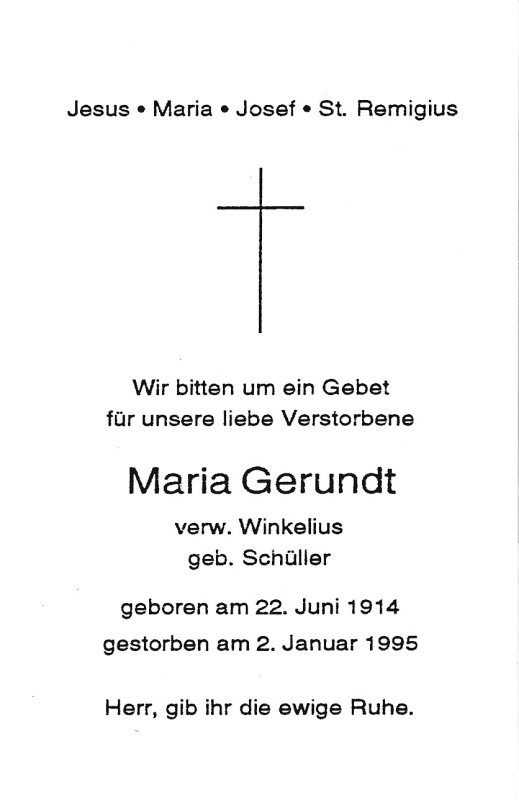 Gerundt, geb. Schüller, verw. Winkelius