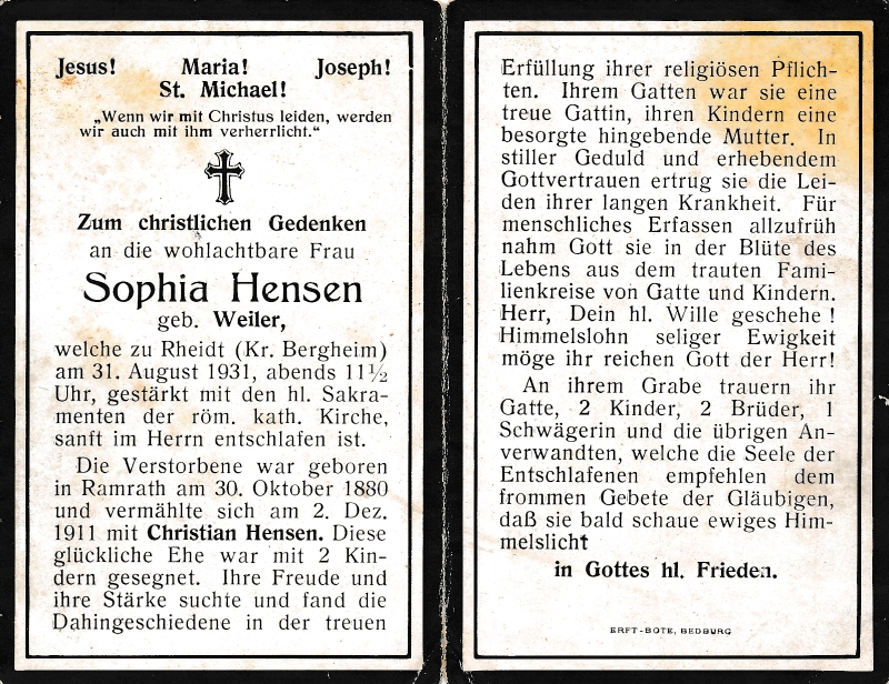 Rheidt, Kr. Bergheim/Erft | Sterbedatum: |