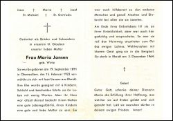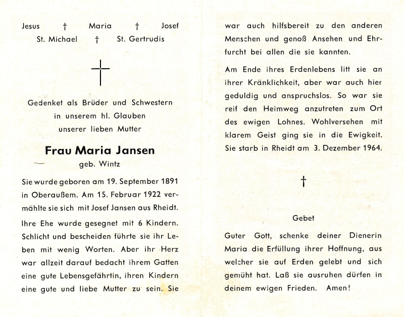 ∞ 15.2.1922 Josef Jansen aus Rheidt; 6 K. |