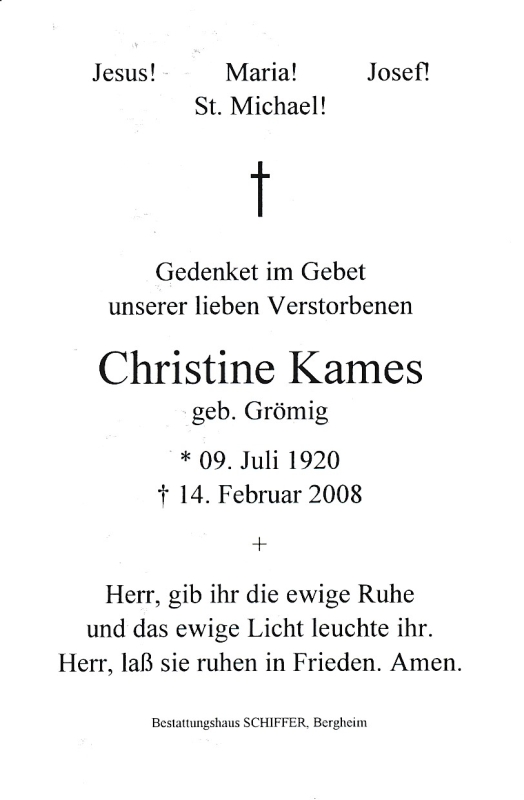 Kames, geb. Grömig | Vorname: |