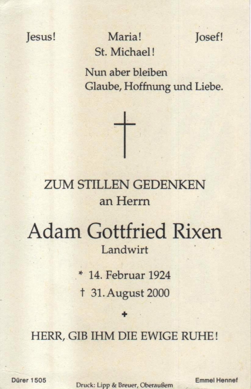 ∞ 1912 Josef Zimmermann, †; 3 K.,davon 1 Tochter † |