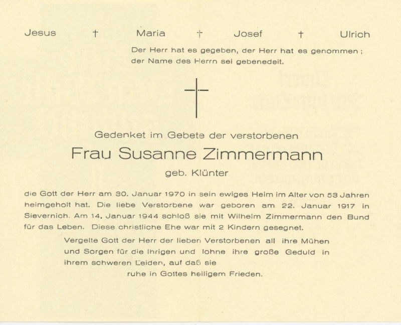 ∞ 14.1.1944 Wilhelm Zimmermann; 2 K. |