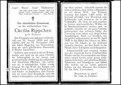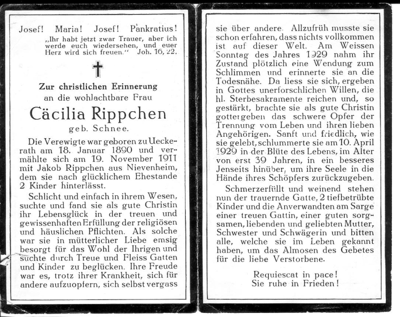∞ 19.11.1911 Jakob Rippchen aus Nievenheim; 2 K. |