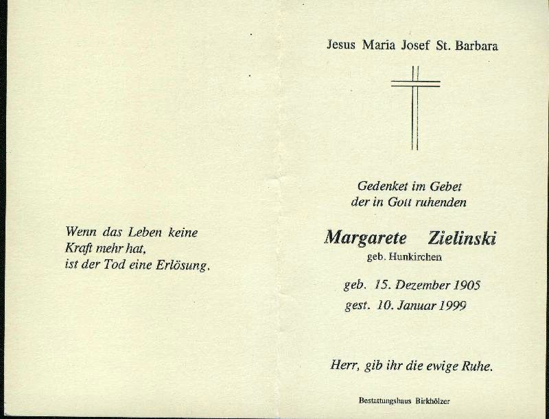 Zielinski, geb. Hunkirchen | Vorname: |